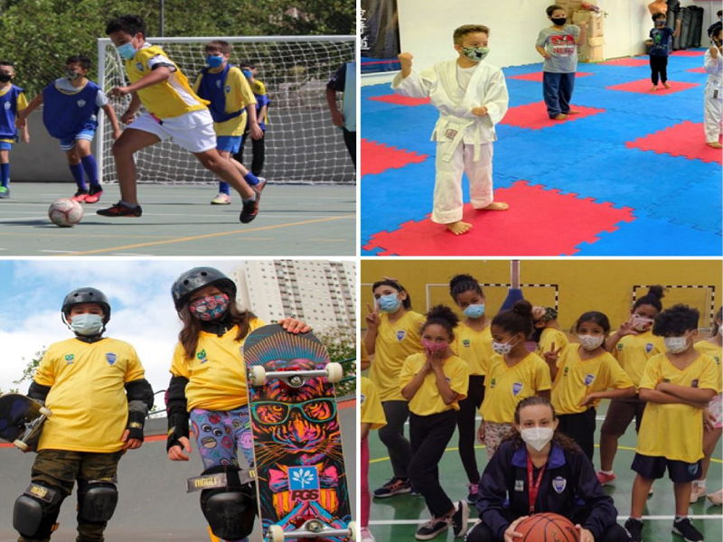 São 16 modalidades esportivas destinadas a crianças, jovens e adolescentes, ministradas nos diversos polos da cidade. E a fim de garantir o retorno seguro, as aulas cumprem com todas as medidas de segurança: dinâmicas de distanciamento, turmas em horários alternados, ambientes higienizados constantemente, aferição da temperatura corporal, além da testagem quinzenal dos educadores físicos.