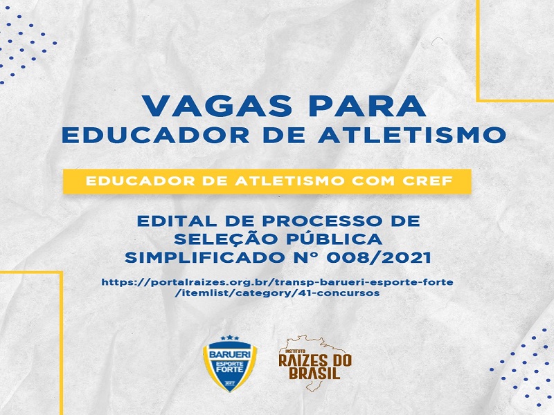Os interessados devem possuir registro no Conselho Regional de Educação Física (CREF) e necessitam realizar a inscrição até o dia 10 de junho, presencialmente, na dede do Instituto de Cidadania Raízes, localizada na Avenida Sansão, 110 – Jardim São Pedro – Barueri, Sp.